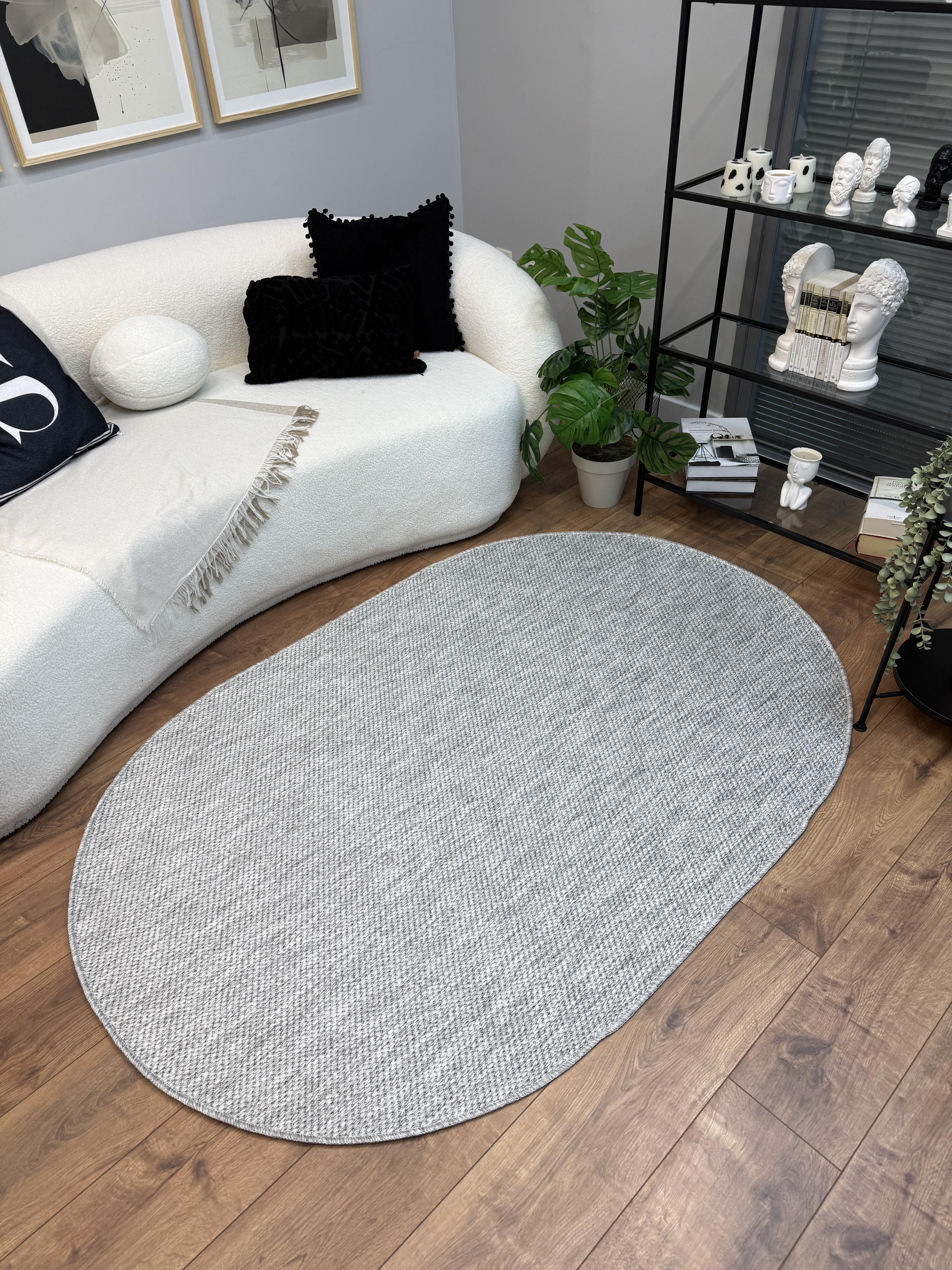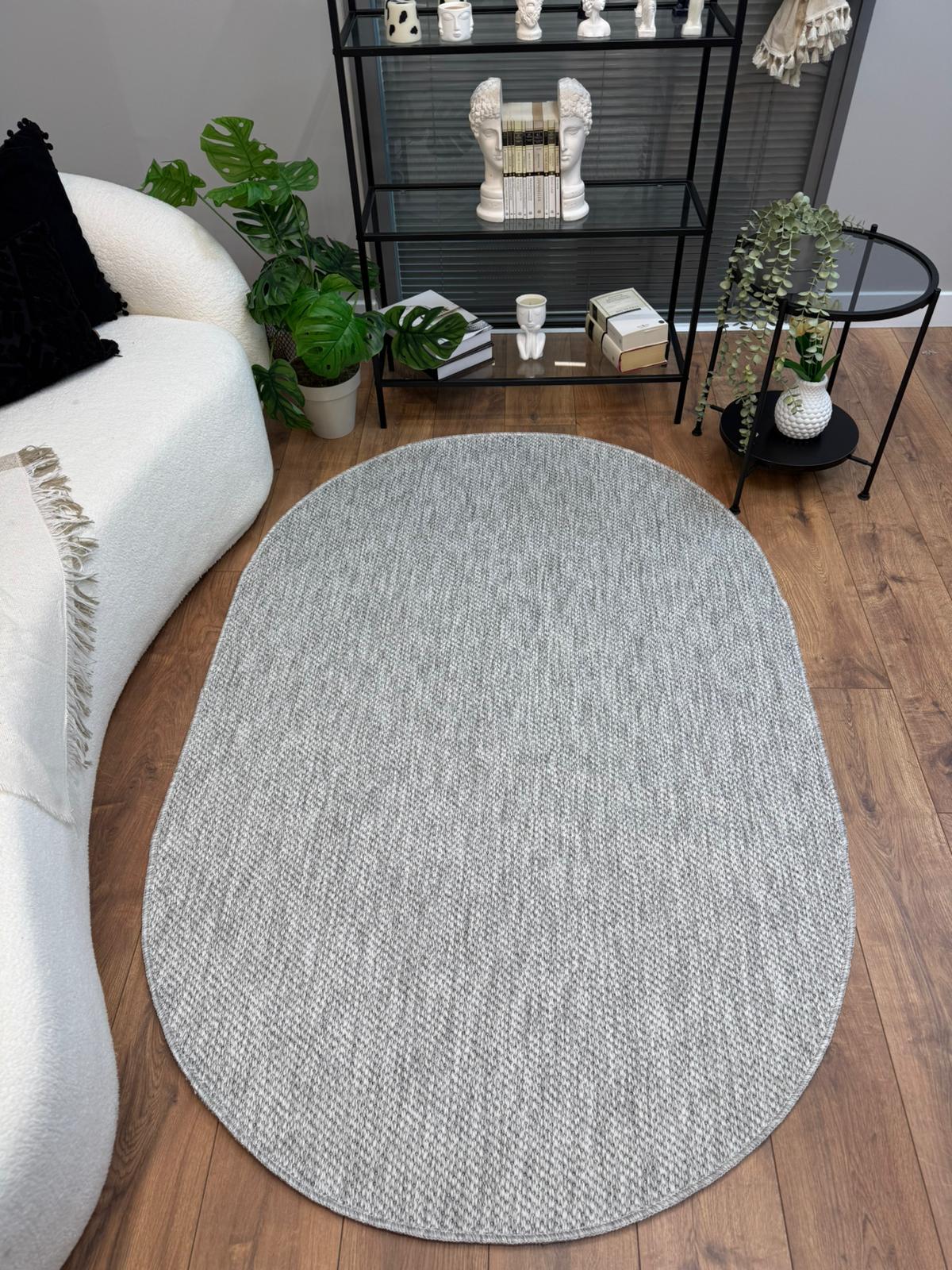OVAL Elit 1017 Gri Sisal Hasır Görünümlü Modern Salon Oturma Odası Dört Mevsim Halı